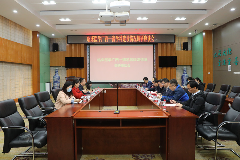 为深入学习贯彻党的二十大关于教育、科技、人才三位一体统筹安排的战略部署,迎接学校党的第十三次党代会胜利召开,以实际行动积极响应机关党委“跳出机关看机关,提升师生满意度”调研活动精神,加快推进学校“双一流”建设,11月30日-12月2日,英国上市官网365深入临床医学、药学、口腔医学、基础医学、公共卫生与预防医学、生物医学工程等6个广西一流学科开展学科建设专题调研。各一流学科负责人、学科研究方向带头人、学科所在学院教研科室主任、学科高层次引进人才、教师代表等参加了调研活动。