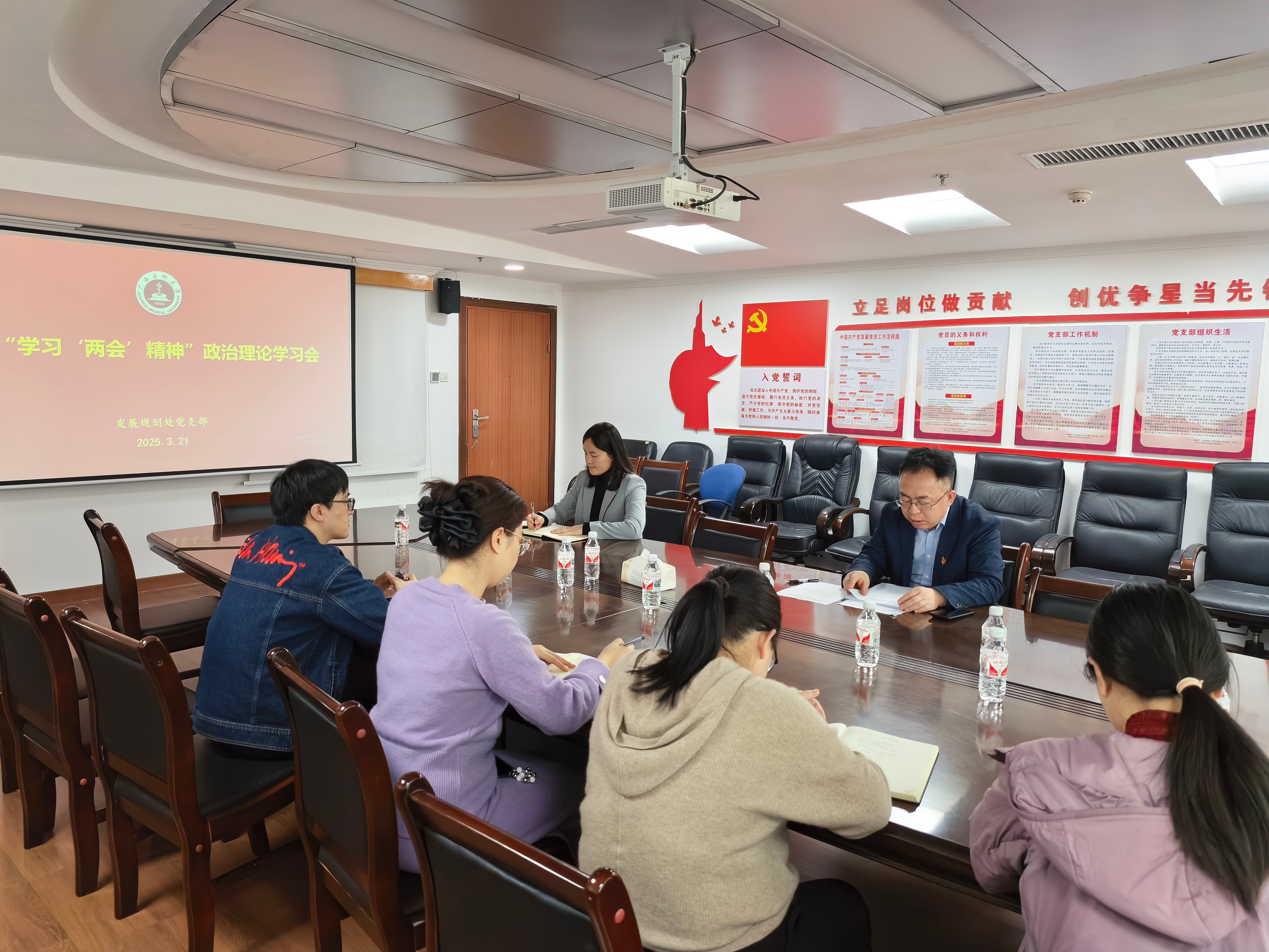 3月21日上午,英国上市官网365在综合楼9楼会议室召开学习全国两会精神政治理论学习会。支部全体党员参加会议,会议由支部书记赵同领主持。