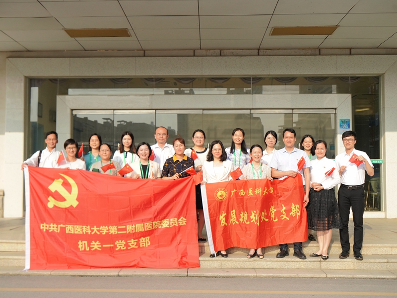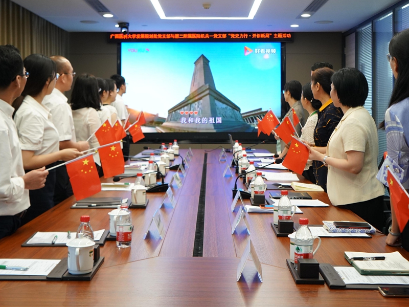 随后,双方就党支部党史学习教育开展、支部品牌特色项目创建以及重要业务进行深入交流与探讨。最后全体与会党员合唱《我和我的祖国》。座谈会结束后,与会党员走访参观了第二附属医院病房医技综合楼项目建设工地。