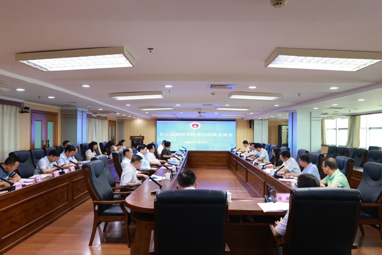 2023年7月12日上午,右江民族医学院党委书记邓砚、校长李雪斌一行来访英国上市官网365,就对口支援和一流学科建设等工作开展座谈交流。英国上市官网365党委书记黄照权、校长曾志羽等校领导出席座谈会,各相关职能部门负责人参会。座谈会由曾志羽校长主持。