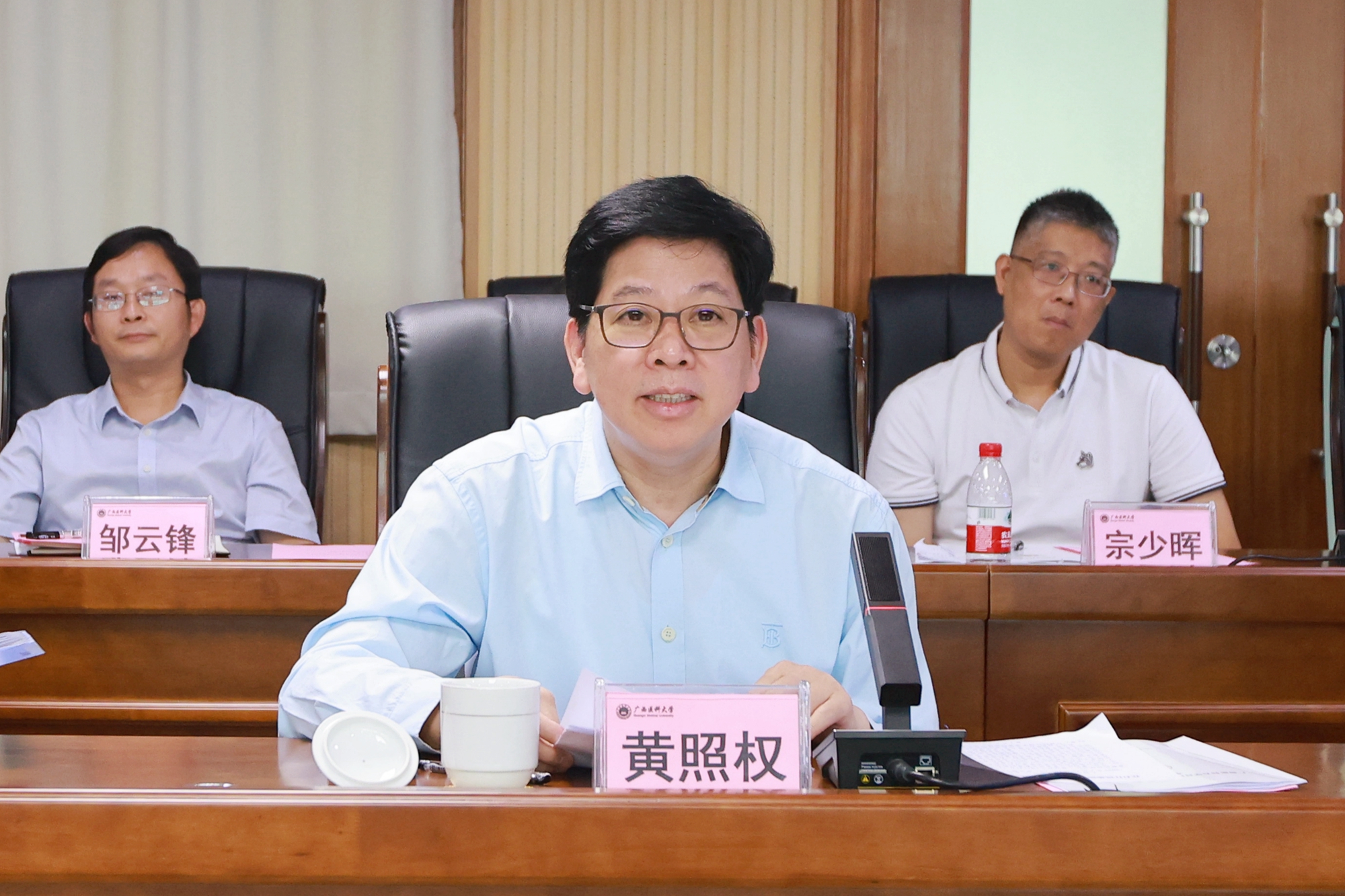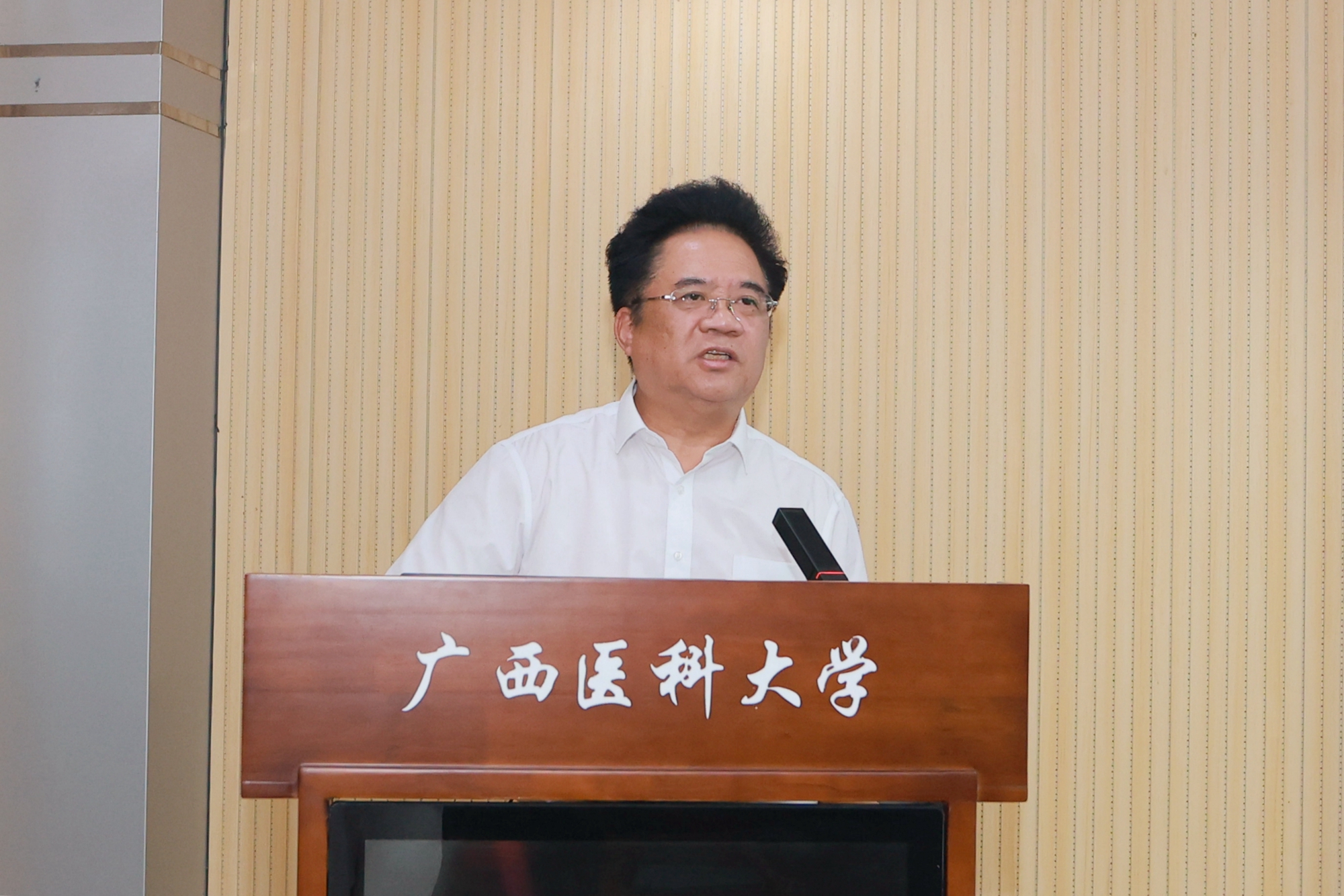 黄照权书记在讲话中表示,广西医科大学与右江民族医学院有着特殊的情感、深厚的友谊和长期的合作。广西医科大学始终坚持“开放活校”办学理念,将高水平开放办学作为全面建设国内同类一流大学的重要抓手,希望双方充分挖掘自身优势,寻找更大合作空间,提升合作的广度、深度和力度,真正做到真合作、真帮扶、真促进,争取实现更大互利共赢,共同促进区域医学教育均衡发展,力争成为对口支援高校合作的典范,为广西卫生健康事业发展和新时代壮美广西建设作出更大的贡献。