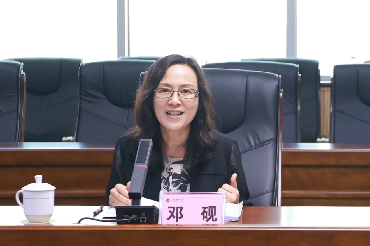 邓砚书记对广西医科大学长期以来的帮助与支持表示衷心的感谢,并从管理队伍建设、一流学科共建项目、科研项目、师资队伍、校际交流等五方面概括了两校结对帮扶以来右江民族医学院的新变化。她希望双方建立更深层次的沟通机制,携手共进、合作共赢,推动双方务实合作取得新的实效。