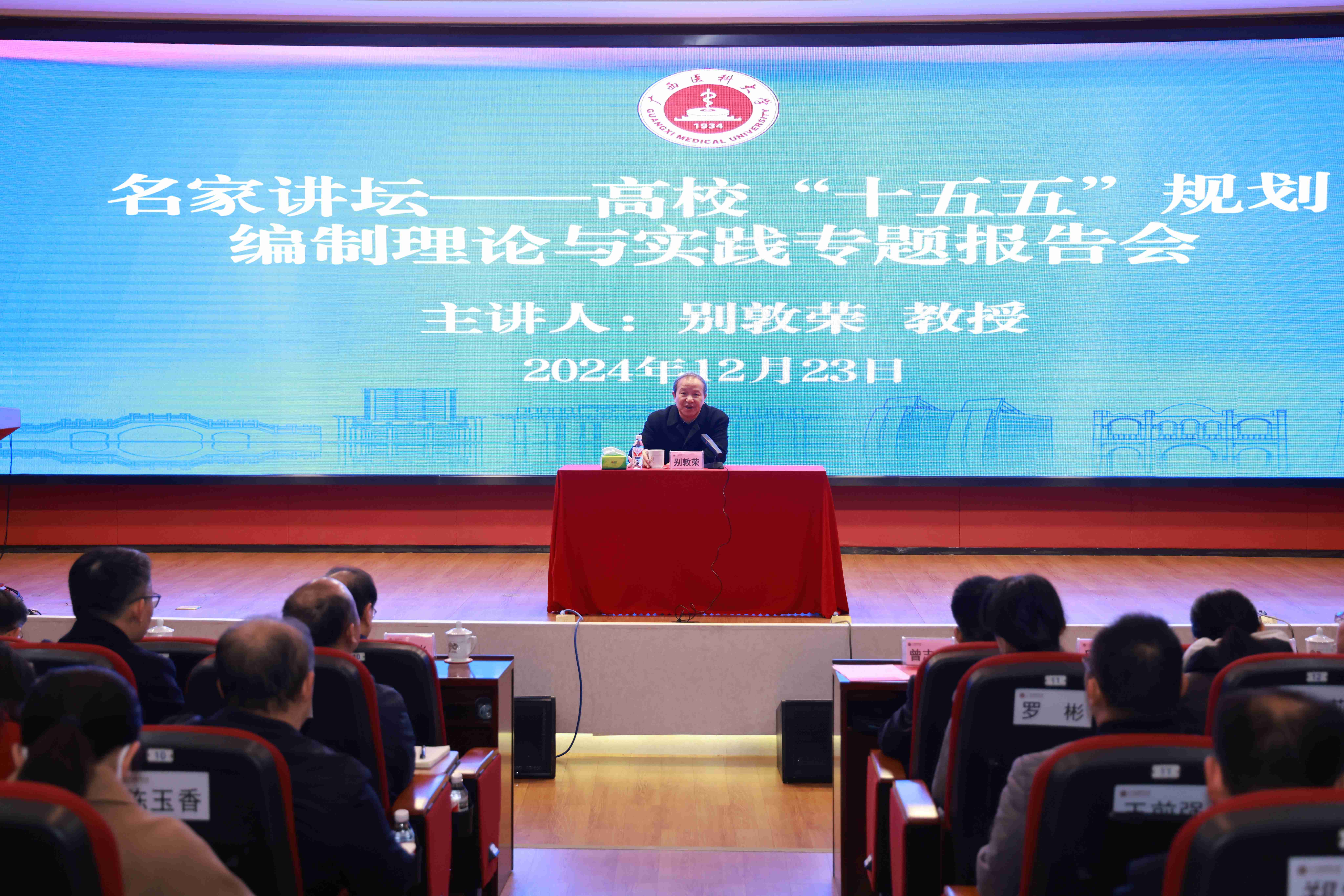 别敦荣教授以理论与实践深度融合的报告形式,从高等教育发展形势、大学战略规划必要性、大学发展战略规划编制内容、大学发展战略规划编制方法等四个方面进行深入阐释。高校要做好“十五五”规划编制:一是在认识上,要树立正确的战略规划观,认识到战略是发展战略规划的灵魂,高质量战略规划对现代大学转型提速发展的引领作用。二是在编制内容上,要体现战略规划“发展愿景、阶段性发展目标、近期重大行动”三个核心要素;要围绕人才培养、科学研究、社会服务三大核心功能来展开,重点考虑办学条件升级、学科专业结构优化、人力资源增值、治理体系和治理能力现代化、学校功能体系优化、文化创新等六个方面内容。三是在编制方法上,要掌握运用好战略思维方法、全员参与法、目标参照研究方法、重点设计方法等基本方法和技术。报告会后,别敦荣教授还参加了规划编制咨询座谈会,党校办、组织部、发展规划处、科技处等部门负责同志围绕学校高质量发展领域重点问题进行咨询交流。