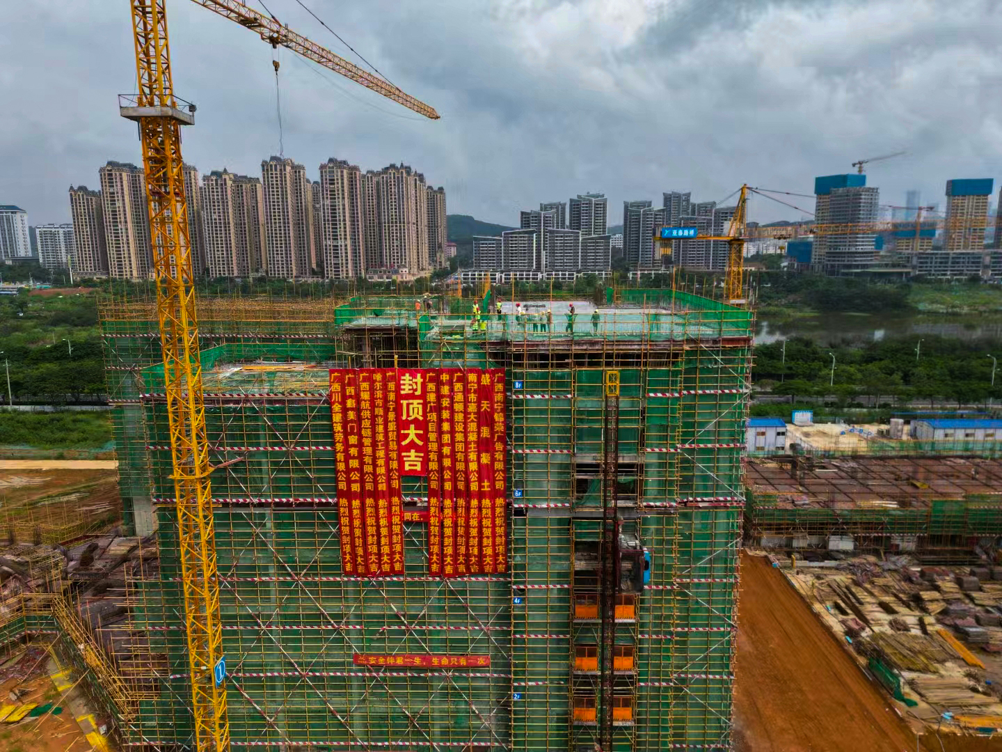 英国上市官网365五象校区首个建筑单体封顶