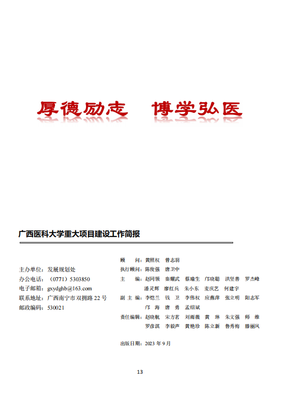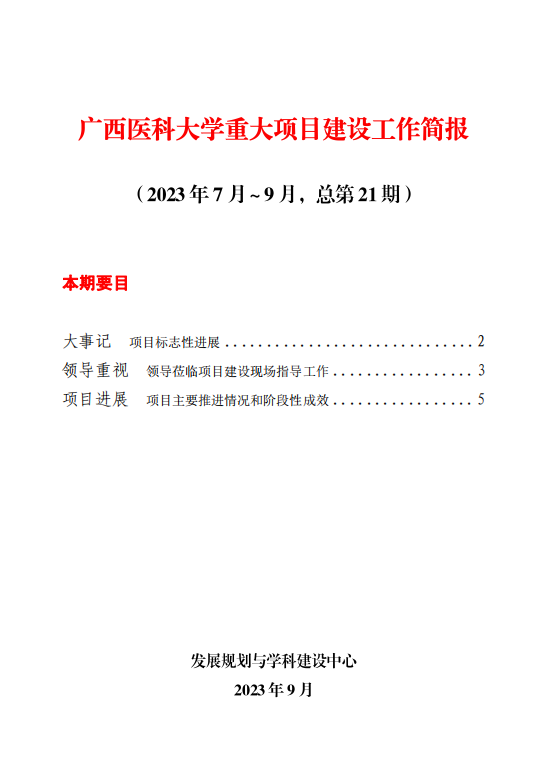 广西医科大学重大项目建设工作简报(2023年7月~9月,总第21期)
