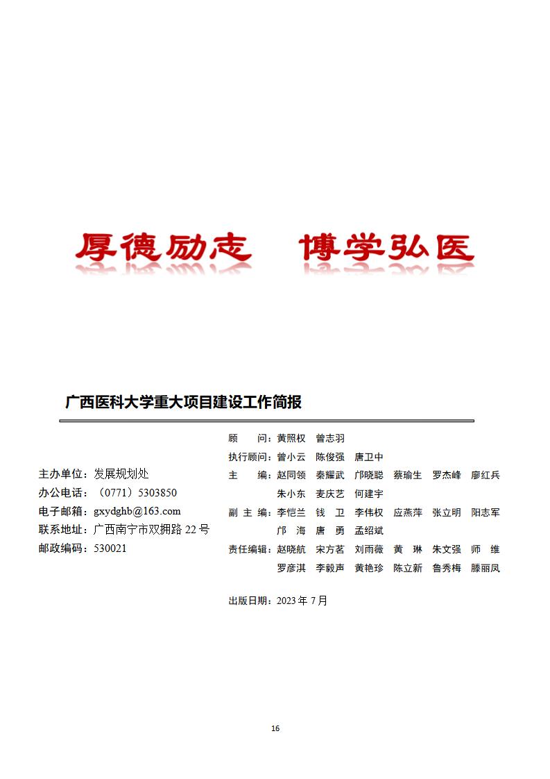 广西医科大学重大项目建设工作简报(2023年4月~6月,总第20期)