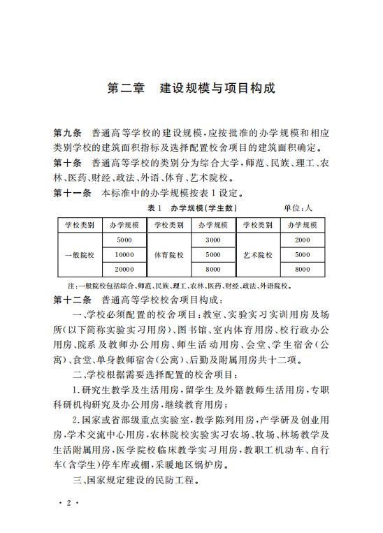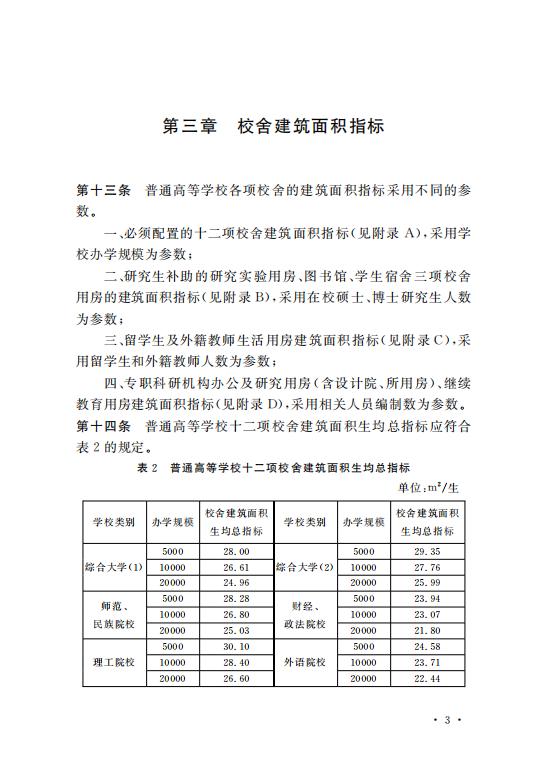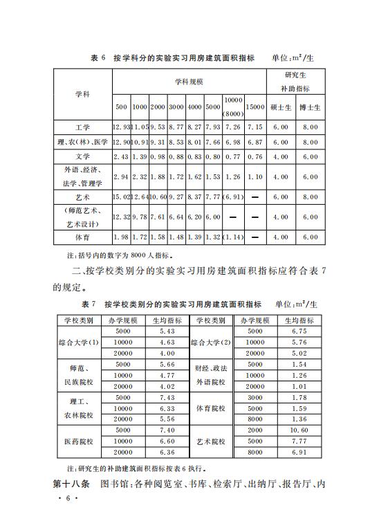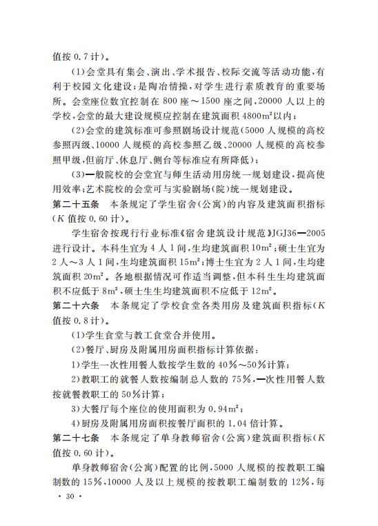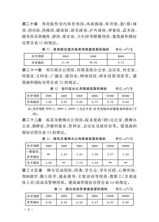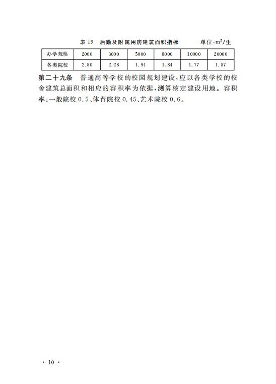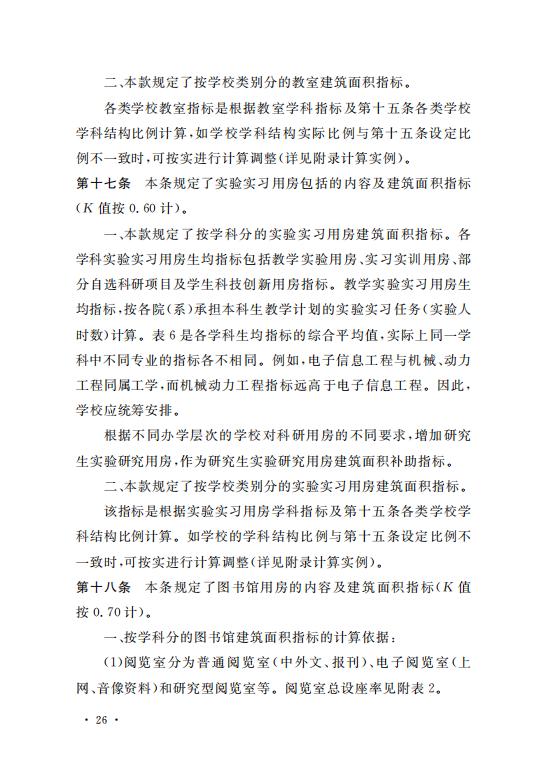 普通高等学校建筑面积指标(2018年3月)(建标191—2018)