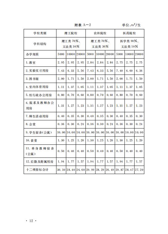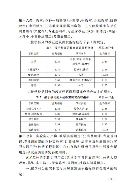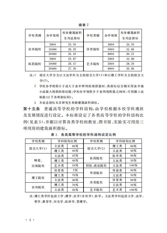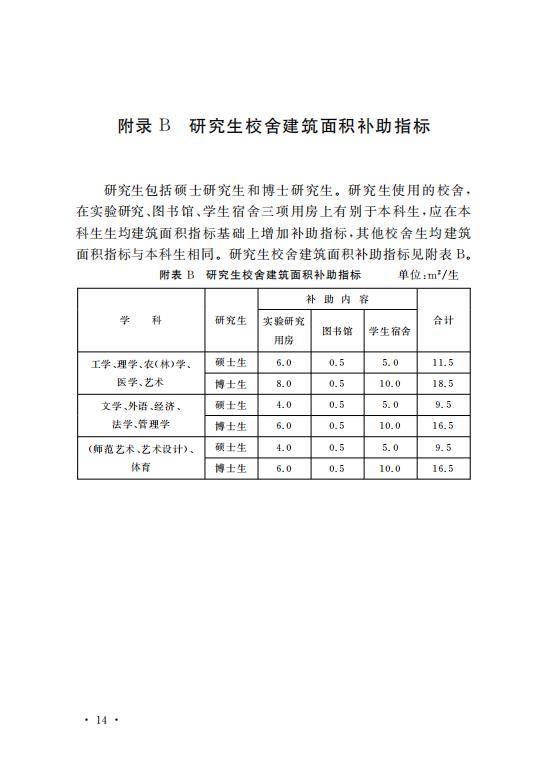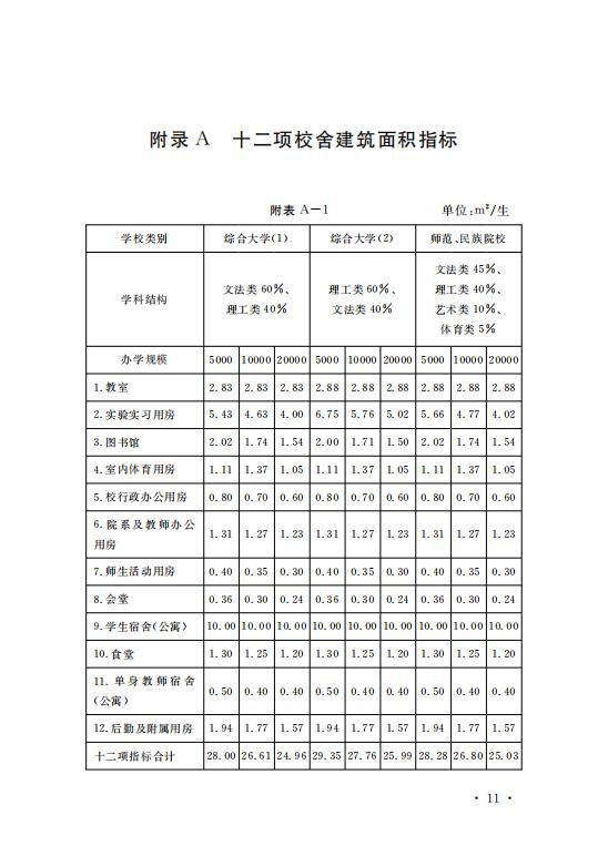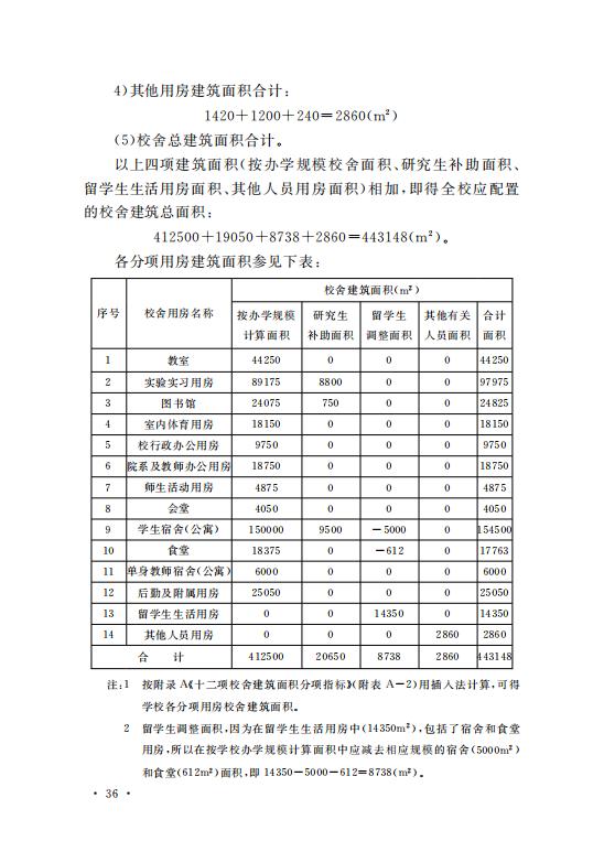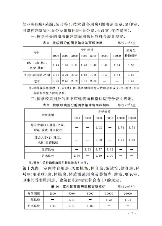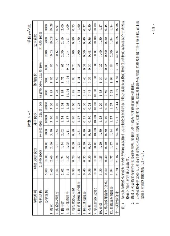 普通高等学校建筑面积指标(2018年3月)(建标191—2018)