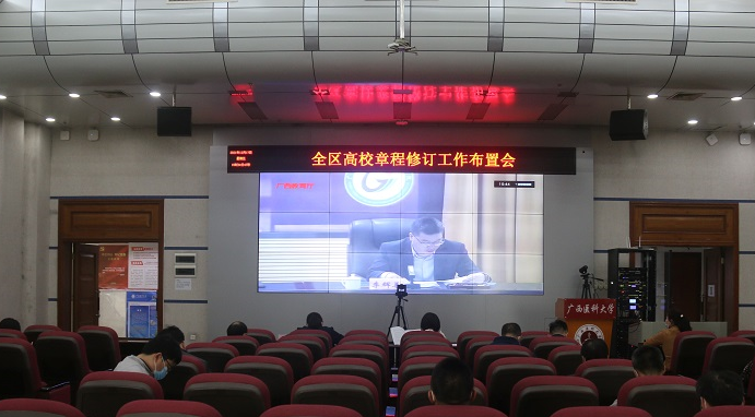 12月17日下午,自治区教育厅召开全区高校章程修订工作视频布置会,伍锦昌副厅长出席会议并做动员部署讲话。英国上市官网365在校本部综合楼9楼报告厅设立分会场,校党委常委、副校长曾小云,发展规划处、党校办、学工部、工会、人事处等23个相关职能部门、二级学院负责人和工作人员共40余人参加了视频会。